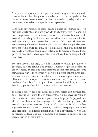 ella platicaba con amigos imaginarios y reía divertida. Al ver eso,