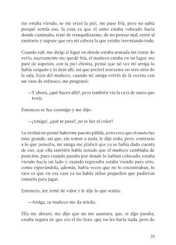 la sala, lejos del muñeco, cuando mi amiga volvió de la cocina con