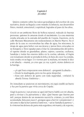 narrativa, desde su llegada a este mundo; la infancia, sus desarrollos