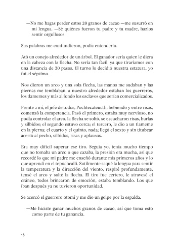 —No me hagas perder estos 20 granos de cacao —me susurró en