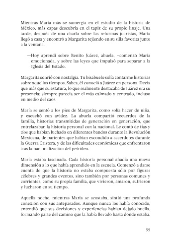 —Hoy aprendí sobre Benito Juárez, abuela, –comenzó María